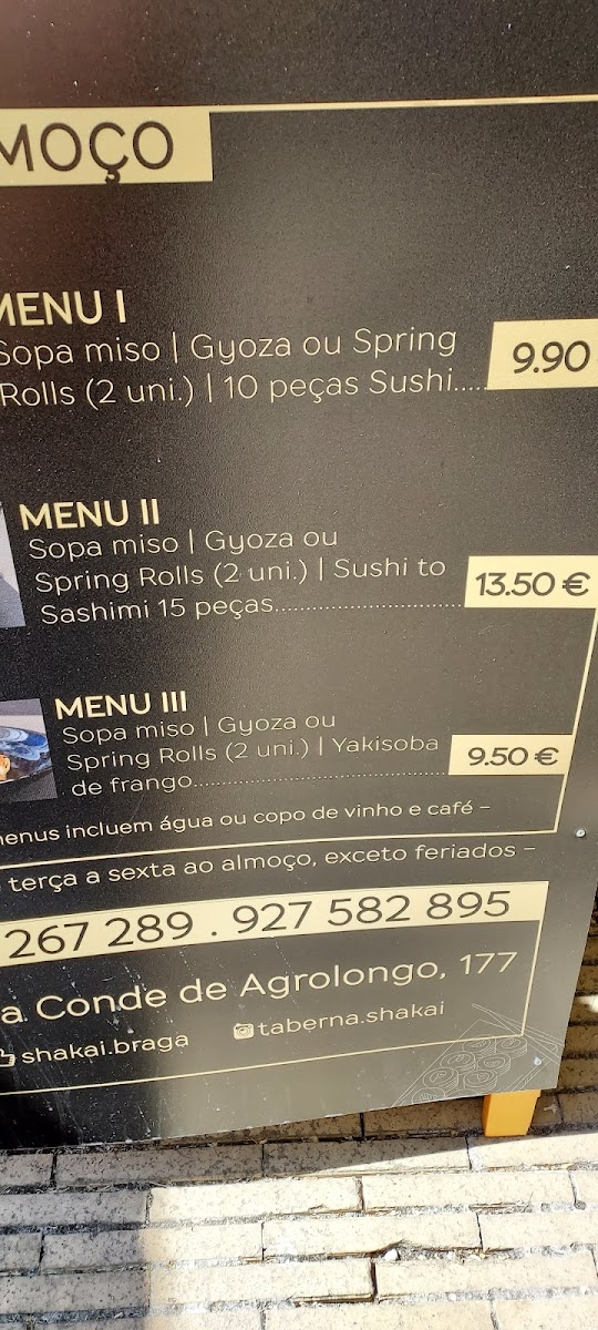 If you're looking for a delightful dining experience, the Taberna Shakai Menu offers an inviting blend of traditional and contemporary flavors. Located in the heart of Braga at Praça Conde de Agrolongo 177, this restaurant serves up a menu that is both comforting and exciting, perfect for any occasion. The dishes are crafted with care, featuring local ingredients that bring the authentic taste of Portugal to every bite. Whether you're in the mood for a hearty meal or a lighter option, there’s something for everyone here. The vibrant atmosphere complements the food, making it a great spot to relax with friends or enjoy a cozy dinner. Take a moment to explore their diverse offerings - you won’t be disappointed!